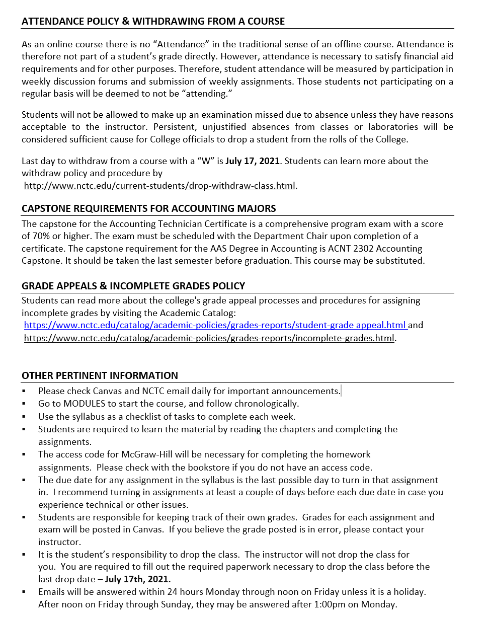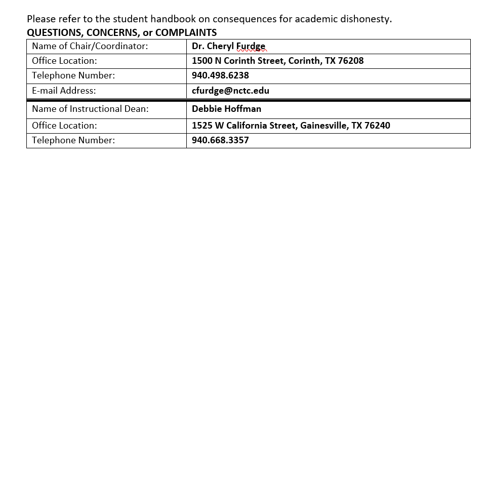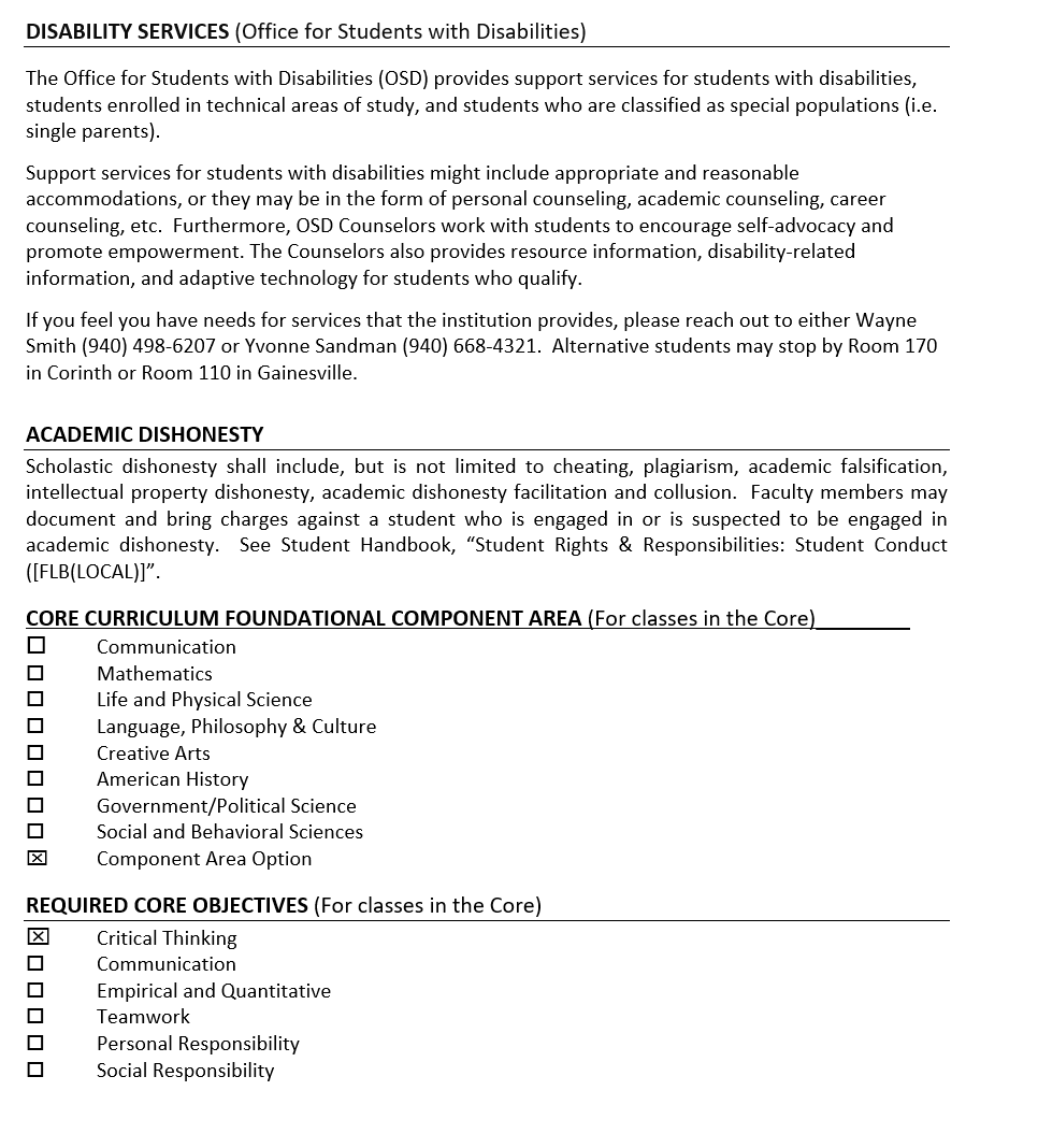 NORTH CENTRAL TEXAS COLLEGE COURSE SYLLABUS