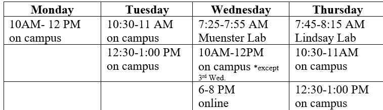 Gender Identity: This course affirms people of all gender expressions and identities. If you prefer to be called a different name than is what on the class roster, please let me know. Please advise me of this preference early in the semester so that I may make appropriate changes to my records, and so I may call you by your preferred name and pronoun. If you'd like your name changed in the roster, please contact the Registrar's office.