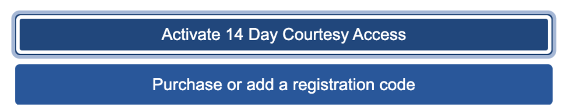 - When you click on the SIMnet link in Canvas you should be given the option to activate a 14-day courtesy access, or you can purchase a registration code or add a registration code.