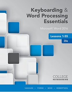 Textbook: Keyboarding and Word Processing Essentials 20E, Lessons 1-55 by VanHuss, Forde, Woo & Robertson. Copyright 2017. LMS Integrated Keyboarding in SAM 365 & 2016 with MindTap Reader, 55 Lessons with Word Processing, 1 term (6 months), Printed Access Card ISBN-13: 9781337114509